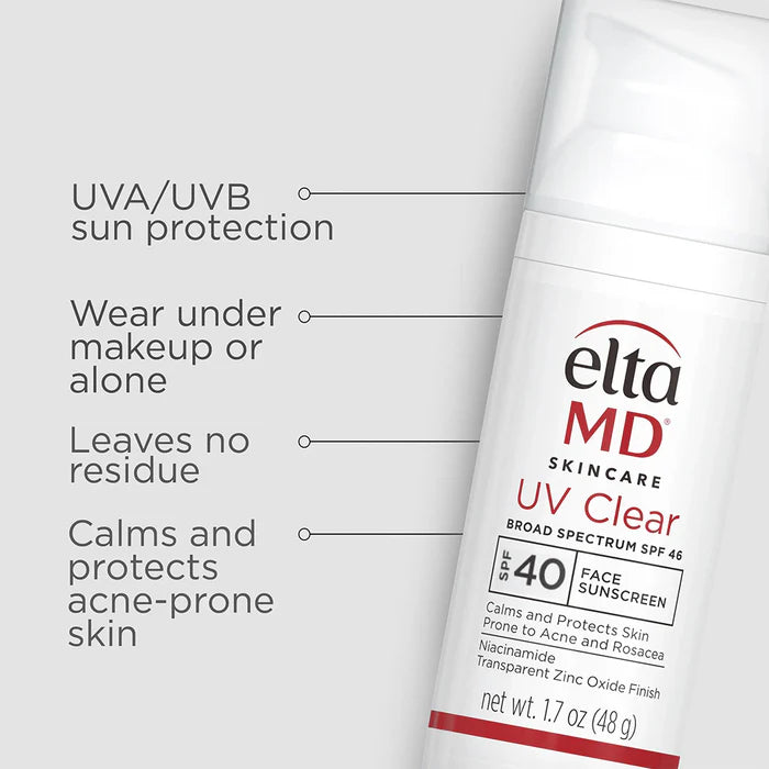 EltaMD UV Clear Broad Spectrum SPF 40 (48g) is a lightweight sunscreen with a sheer tint to help even skin tone. Formulated with high-purity niacinamide (vitamin B3) to help reduce the appearance of blemishes and discoloration on your skin for a more smooth appearance. This broad spectrum sunscreen contains micronized zinc oxide to protect your skin from damaging UVA (aging) and UVB (burning) rays.